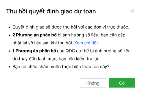 • Nhấn nếu vẫn muốn thực hiện Thu hồi.
