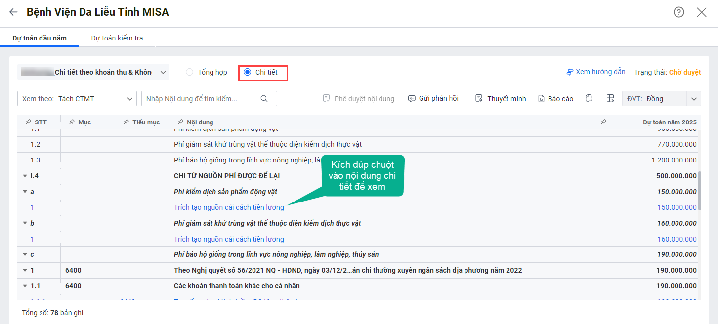 4. Nếu xem theo Chi tiết, kích đúp chuột vào các dòng nội dung màu xanh để xem.