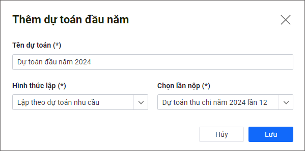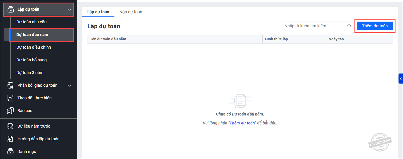1. Vào Lập dự toán\Dự toán đầu năm.