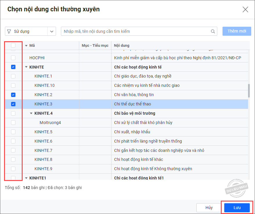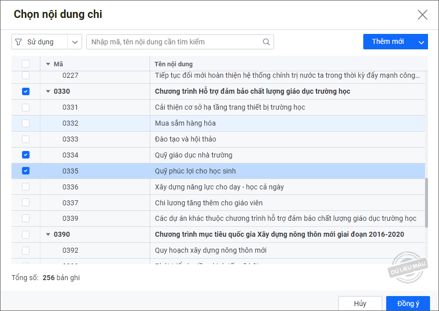 3. Trường hợp cần thêm nội dung chi, nhấn vào dấu + và chọn nội dung cần thêm.