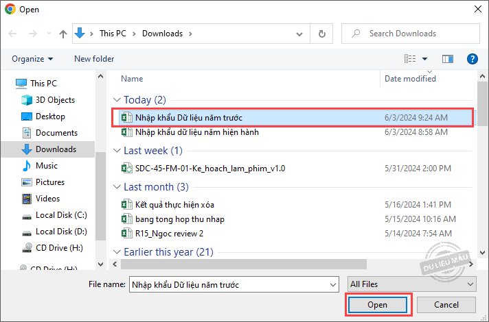 - Nhấn Nhập khẩu.