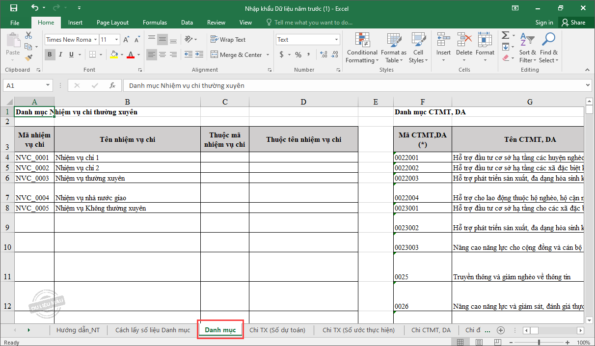- Chọn sheet Danh_Muc để xem chi tiết các danh mục.