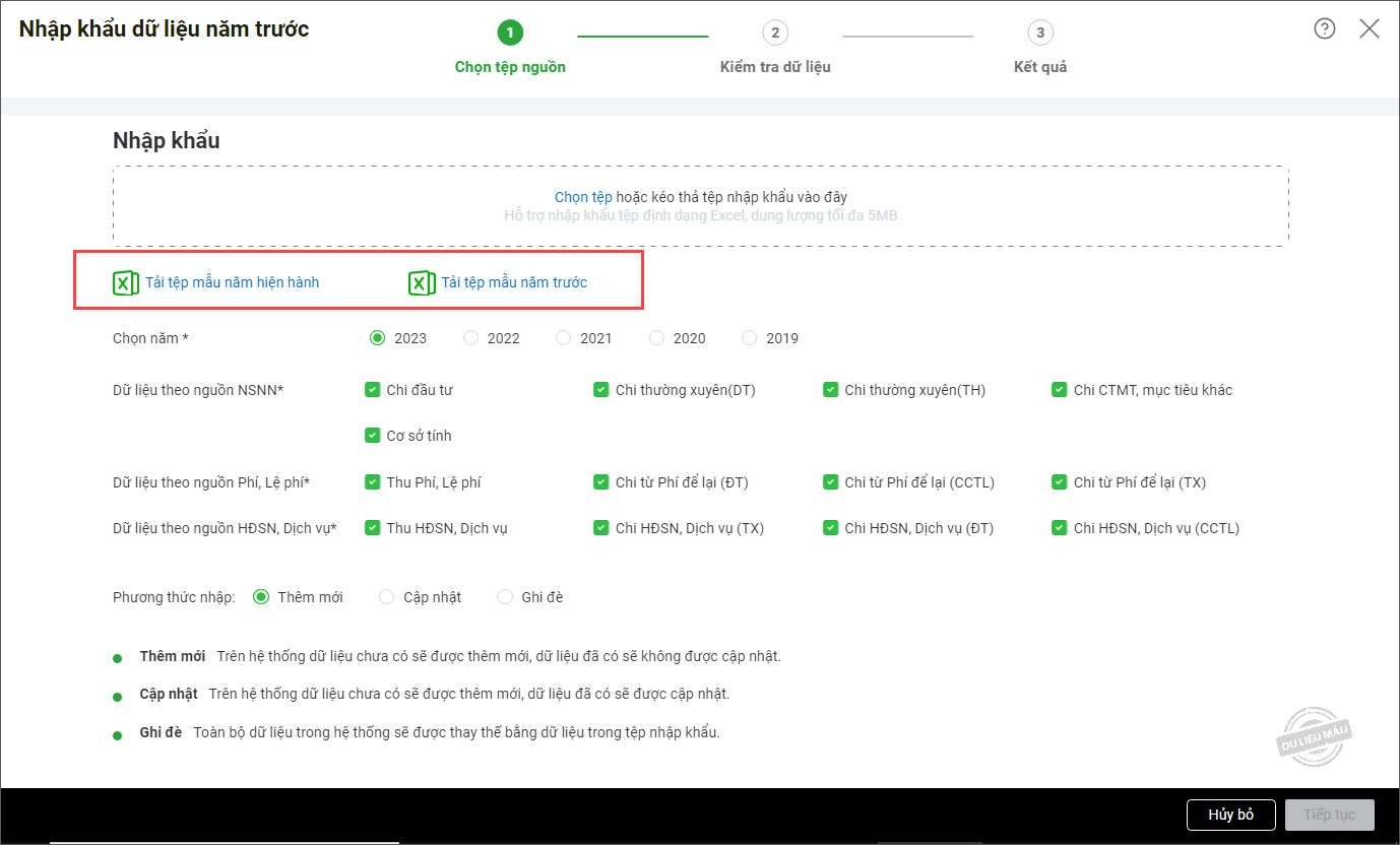 1. Chọn Tải tệp mẫu năm hiện hành hoặc Tải tệp mẫu năm trước về máy.