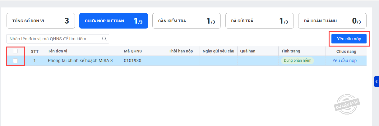 3. Đối với các đơn vị trực thuộc chưa nộp dự toán, đơn vị có thể yêu cầu nộp dự toán bằng cách: