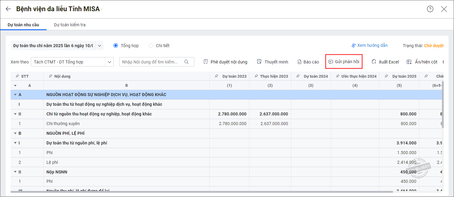 5. Sau khi xem dự toán nhu cầu, đơn vị có thể gửi phản hồi cho cấp dưới trong trường hợp cấp dưới không có nội dung cần phê duyệt hoặc có nội dung cần phê duyệt nhưng chưa tạo biên bản kiểm tra,…