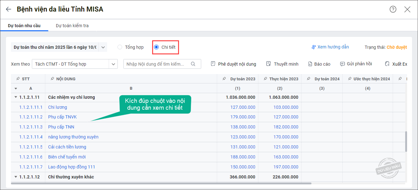 Bước 1: Xem dự toán theo nhu cầu của cấp dưới