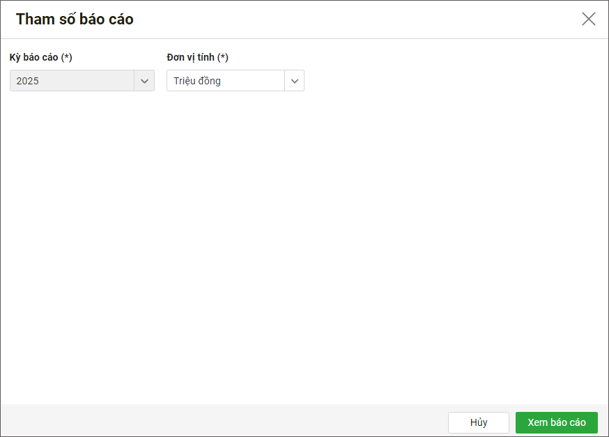 - Để xem báo cáo với tham số khác, nhấn Chọn tham số báo cáo.